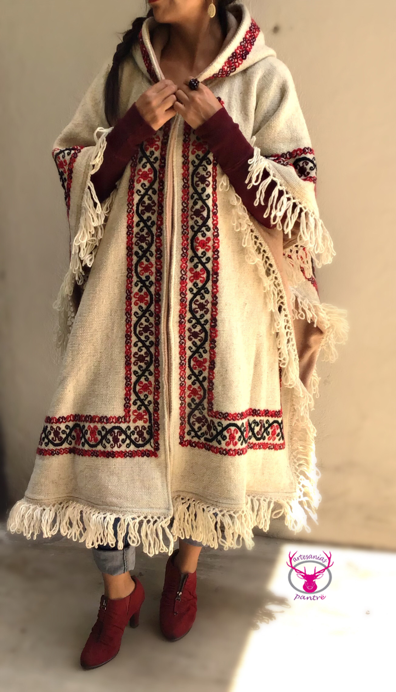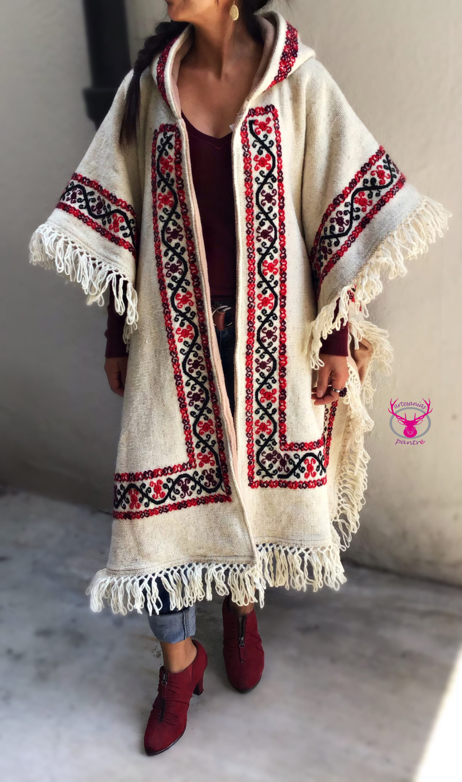 Ruana doble vista con capucha